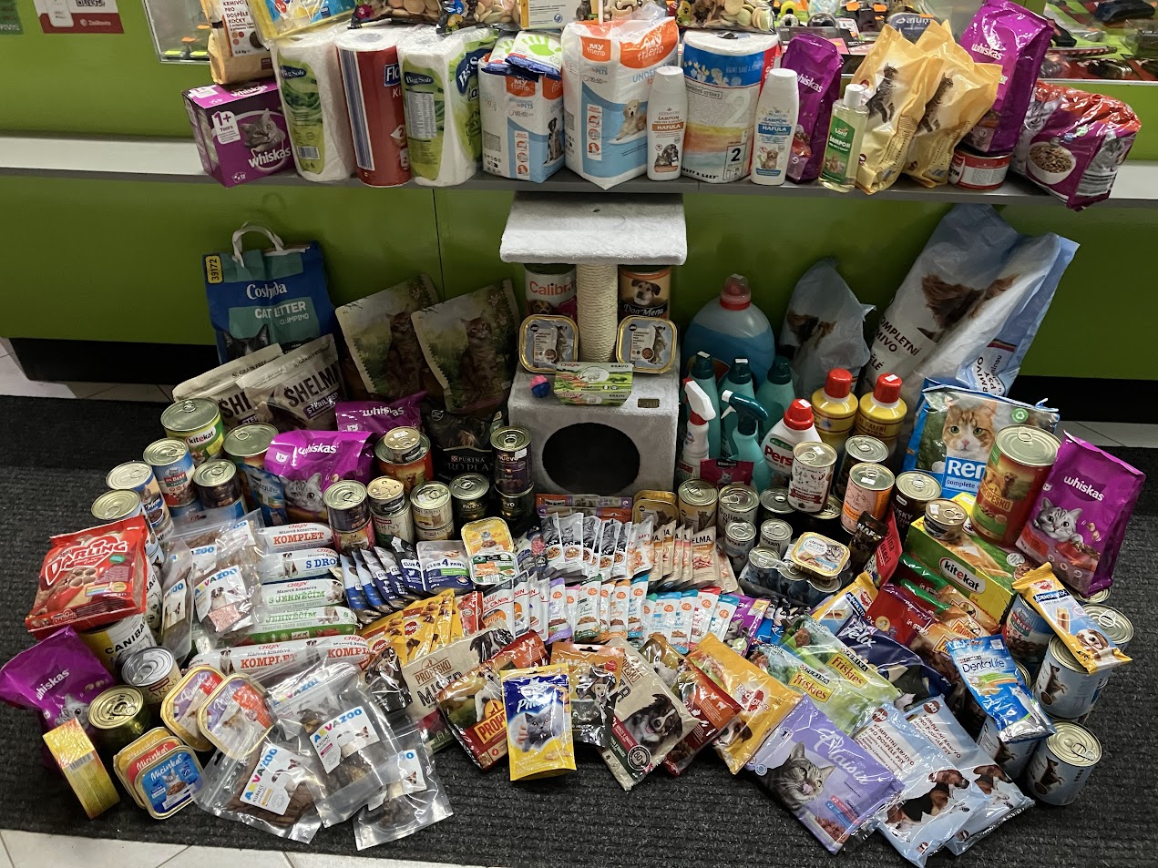 Do sbírky se zapojilo mnoho lidí, kteří přispěli všechno možné od krmení až po čistící prostředky, které jsou při péči o zvířátka naprostá nezbytnost. Na výsledek se můžete podívat na fotce. Moc všem děkujeme!