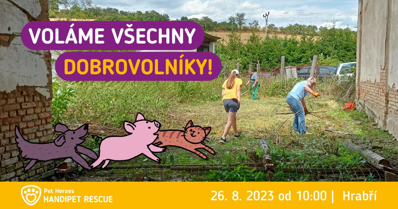 Poslední srpnová sobota se v Handipet Rescue ponese v duchu prací na statku v Hrabří, kde se chystáme postavit centrum na pomoc zvířatům v nouzi. Vezměte přátele nebo rodinu a pojďte spolu s námi pomoct dobré věci.