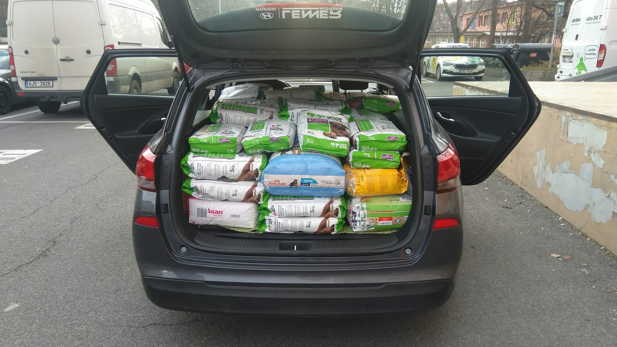 Takhle nám naplnili auto v Alze! Až jsme ho skoro neodvezli. 😀 Hrozně moc Alze a paní Kotulánové děkujeme za to, že tolik myslí na pejsky a kočičky v azylu a pomáhají, co se dá. ❤ Velmi nás to hřeje u srdce, když vidíme, že ani takovým velkým firmám, jako je Alza, nejsou zvířecí osudy lhostejné. Opravdu moc jménem všech zvířátek děkujeme za pomoc. ❤