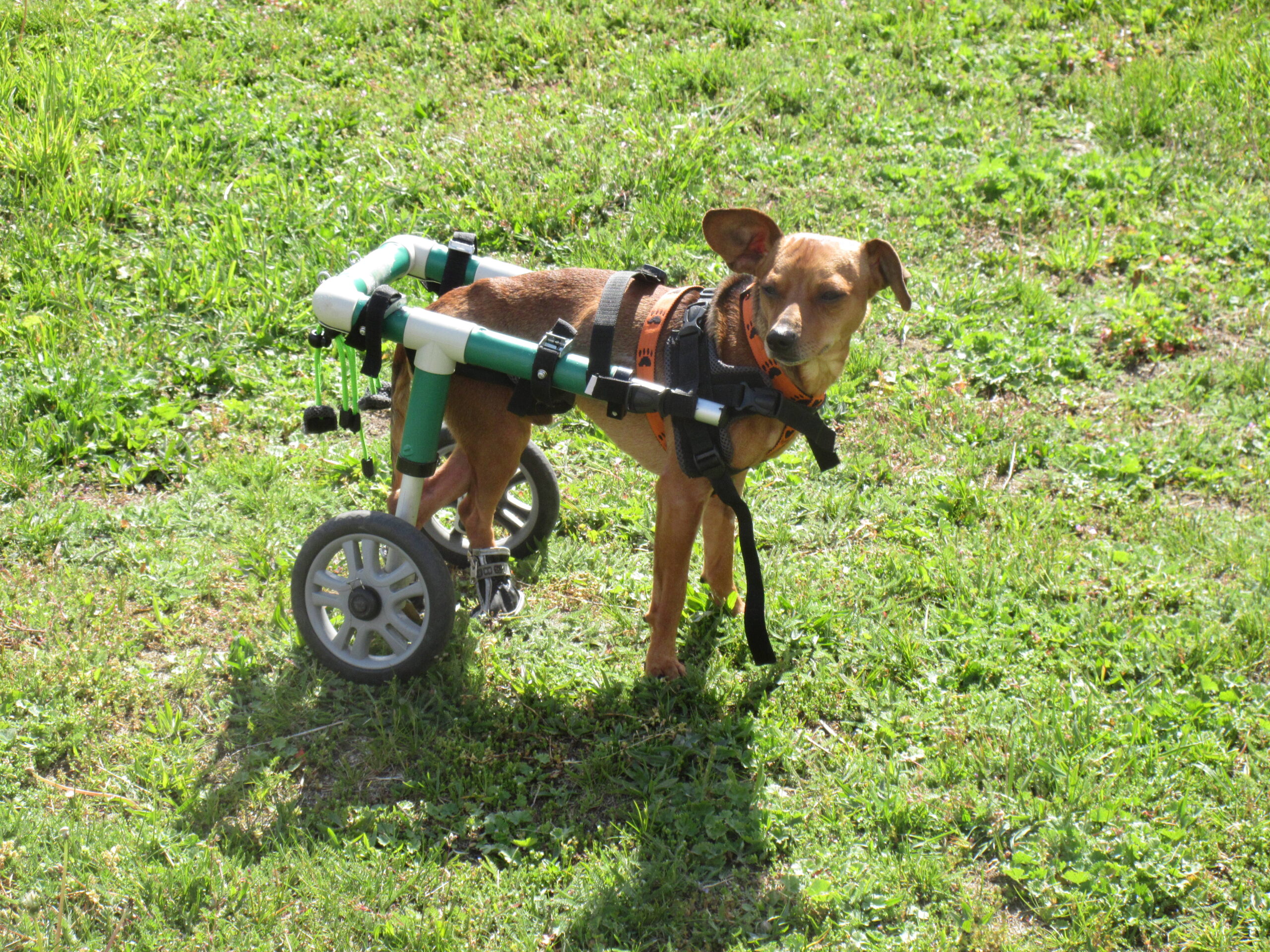 Barney byl ochrnutý a péče o něj byla velmi náročná. Přišel k nám už s vozíčkem, ten mu ale příliš dobře neseděl, a proto jsme pro něj nechali vyrobit vozíček nový, na míru. Takový, jako dostaly i fenečky Tara a Annie.