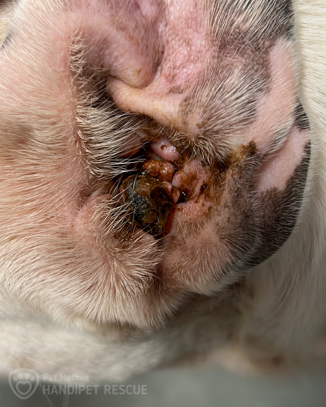 Po operaci močového měchýře se nicméně dva měsíce čekalo, aby si Emil mohl před další operací oddychnout a plně se zregenerovat. Když potom přišel čas na předoperační kontrolu, paní doktorka byla nadšená z toho, jak moc se mu pravé ouško zlepšilo. Pravidelné čištění a léky konečně přinesly výsledek, když už to nikdo ani nečekal. Paní doktorka říkala, že pokud by se ho v tomhle stavu podařilo udržet, tak by se dokonce ani nemuselo operovat!