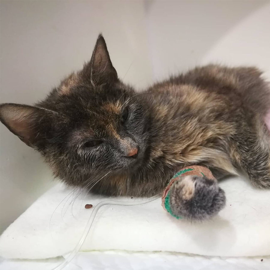 Kočička ze všeho nejdřív putovala na veterinu. Podstoupila dvě operace zlomené pánve. Naštěstí obě proběhly bez komplikací. Ale na Gigi čekala ještě dlouhá rekonvalescence, aby mohla znovu bez bolesti běhat jako dřív.