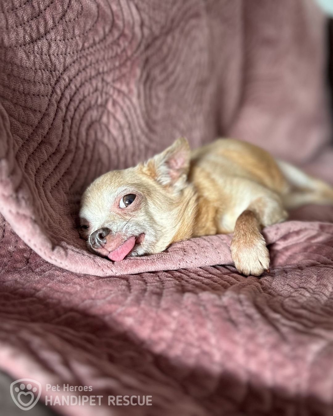 Glinda byla jednou z nejvíce postižených feneček zachráněných z Velkého čivavího neštěstí. Tahle malá psí slečna měla totiž nohy v naprosto katastrofálním stavu. Byly úplně nepřirozeně vybočené, neustále se hrbila a chůze jí dělala problémy. Když pan doktor koukal na rentgen, prohlásil, že tam je špatně snad úplně všechno…