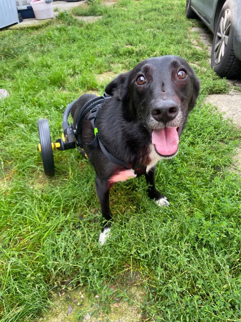 Máme skvělou, přímo báječnou zprávou – vlastně dokonce dvě! Lolli dorostl do své maximální velikosti a dál už neporoste, konečně jsme ho tak mohli změřit a objednat mu jeho vlastní vozíček!