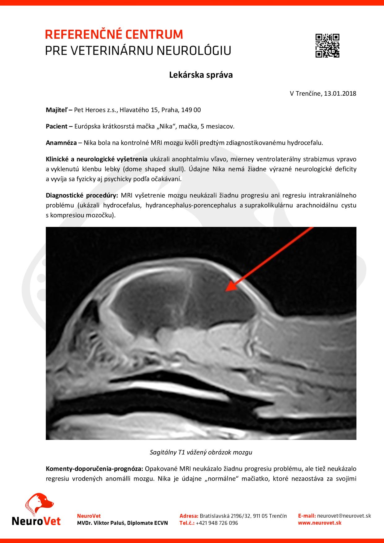 Díky spouště skvělých lidí se podařilo nasbírat dostatečné finanční prostředky na to, aby Nikuška mohla MRI podstoupit! A jaký je výsledek?Její diagnóza je nakonec Hydraencefalus – znamená to, že má sice v hlavě vodu, ale nic jí nedělá, netvoří se další tekutina a tím pádem není důvod operovat!