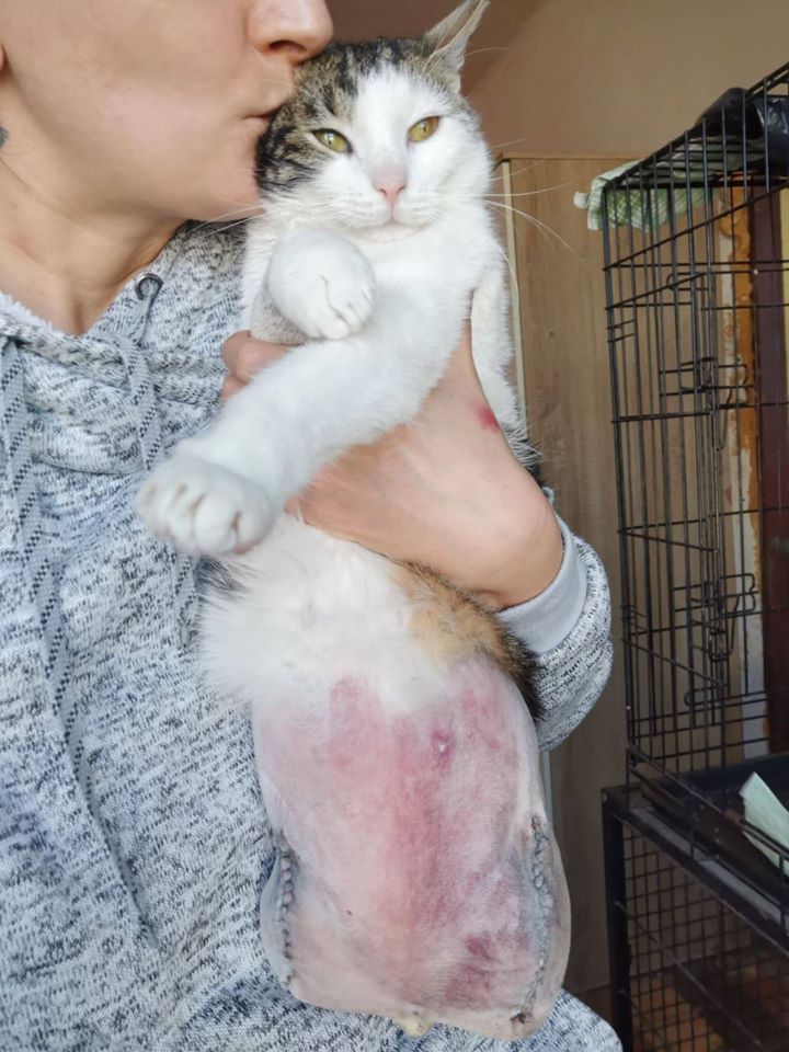 Když je zvířátko ochrnuté a tahá postižené nožky za sebou, často dochází k různým oděrkám a dalším nepříjemnostem. To se bohužel týkalo i Toníčka. Při jeho poslední návštěvě veteriny proto pan doktor usoudil, že bude nejlepší, pokud se mu nožičky odeberou. Toníček je totiž stejně necítil a nevěděl o nich a způsobovaly mu jen problémy navíc.
